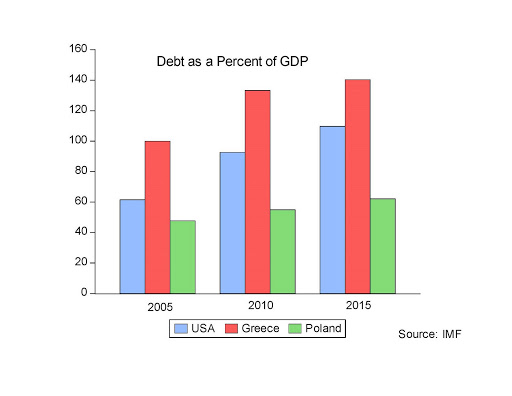 While Poland still needs to be vigilant and keep its government debt from rising as a share of GDP, it is currently in far better shape than other countries according IMF data on debt, including the United States.