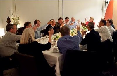 This photo is a great visual aid for discussing opportunity cost. It shows Barack Obama along with entrepreneurs and chief executives of top technology firms: Apple, Cisco, Facebook, Genentech, Google, Netflix, Oracle, Twitter, and Yahoo. They’re meeting over dinner to talk about the economy.