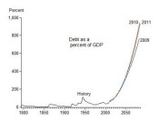 CBO’s Long-Term Budget Outlook released this week is essentially the same as last year’s: without a change in policy the debt will explode to over 900 percent of GDP. One difference is that CBO decided not to print out the debt ratio in their spread sheet “Data Underlying Scenarios and Figures” as in the past two year once the ratio went beyond 200 percent. So in the following graph I computed the ratio from the revenues and spending projections.