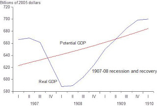 both associated with severe financial crises. You can see the sharp rebounds, nothing like the terrible recovery we have seen recently. This does not imply that the period after these recoveries was smooth; indeed a double dip followed the recovery in the early 1890s.