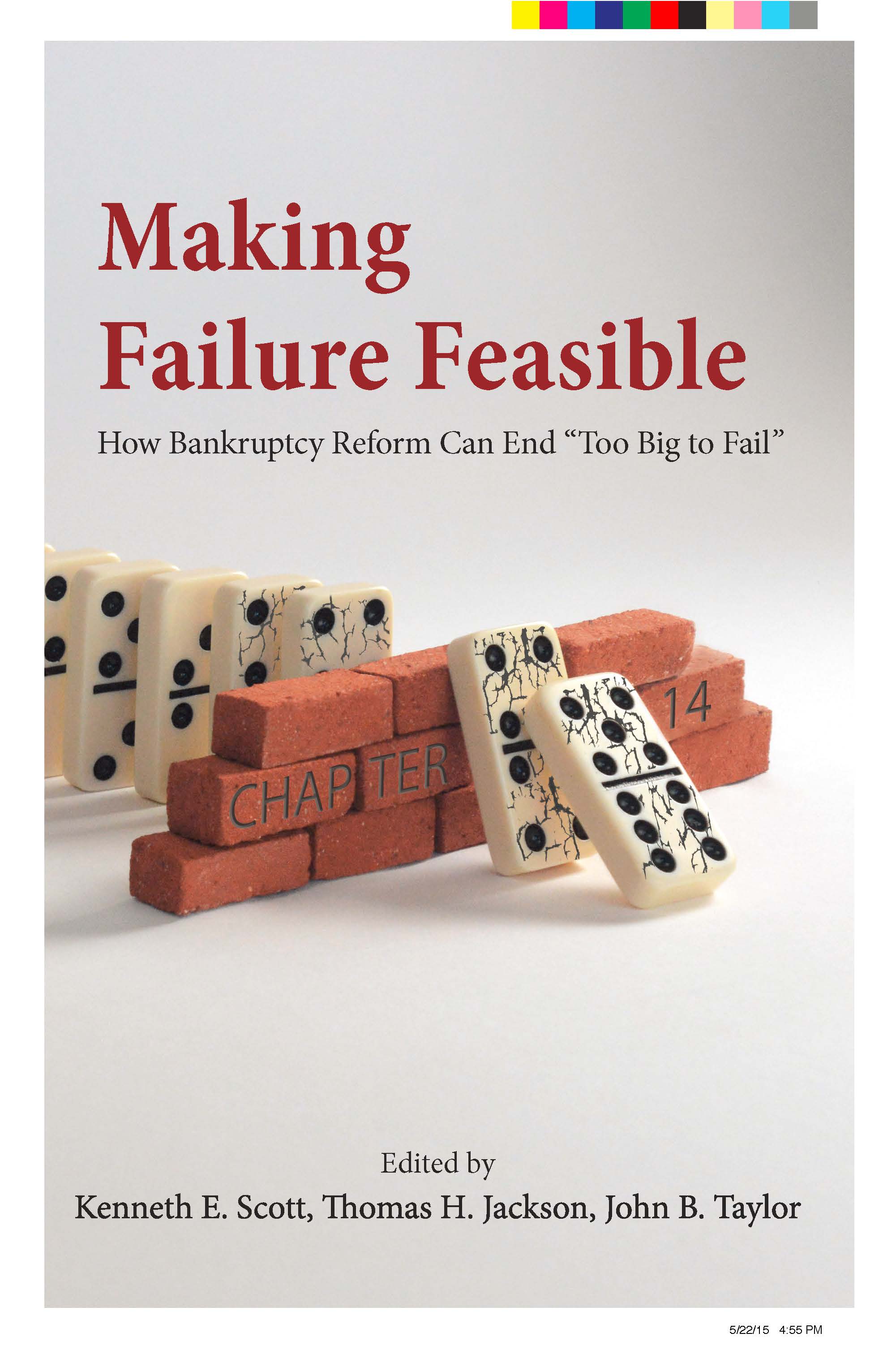 Today the Senate held a hearing on a bankruptcy reform proposal which would address the problem of too-big-to-fail head on. The reform applies to large financial firms and makes failure feasible under clear rules without systemic spillovers thereby greatly reducing the likelihood of government bailouts. Much work has been devoted to this proposal, including at the Resolution Project directed by Ken Scott at Stanford’s Hoover Institution, where a third book on the topic is coming out with this suggestive cover (two of the co-editors, Tom Jackson and I, testified at the hearing: Tom’s testimony and my testimony).